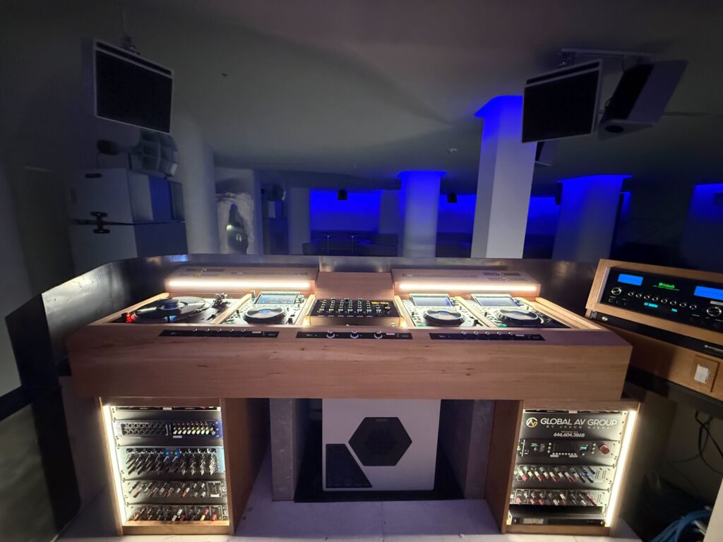 A modern hi-fi bar and listening room "for the serious audiophiles" and music lovers.